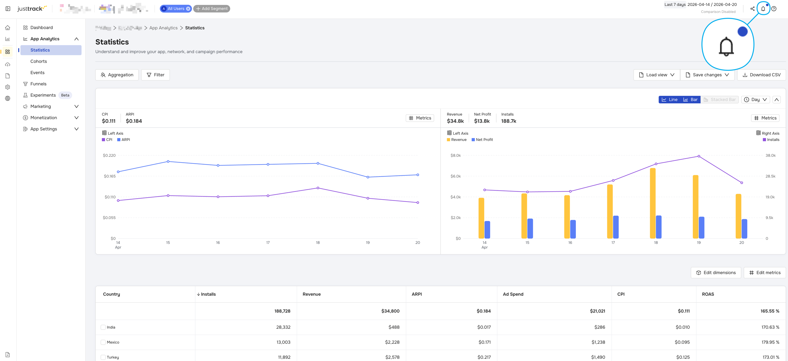 justtrack notifies you when it detects a problem with your campaign setup. Notifications appear as errors.